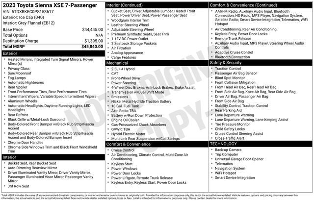 2023 Toyota Sienna XSE Ice Cap 36/36 City/Highway MPG