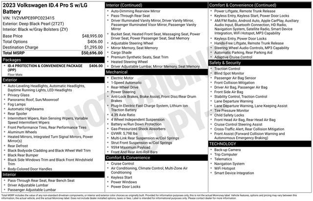 2023 Volkswagen ID.4 Pro S Deep Black Odometer is 16880 miles below market average! 115/98 City/Highway MPG