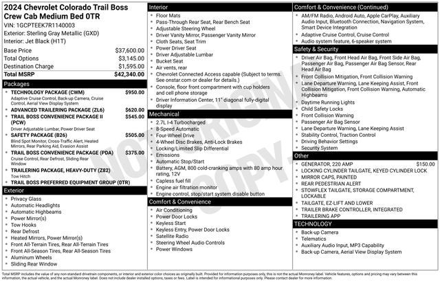 2024 Chevrolet Colorado Trail Boss Sterling Gray Metallic Odometer is 19545 miles below market average!