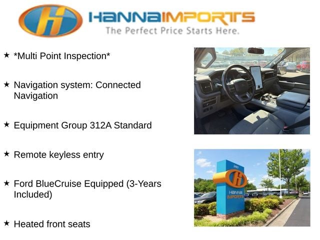 Why shop with Hanna Imports? We specialize in hand-selecting top-quality used cars, trucks, and SUVs for drivers across Raleigh, Durham, Cary, Chapel Hill, and the greater Triangle area of North Carolina. Our massive selection of 1,000+ vehicles on our Raleigh lot is carefully curated to include the most sought-after models, all priced below market value. We believe in transparency and efficiency—our vehicles are aggressively priced from the start, which means no haggling, no hassle, and no wasted time. The price you see is our absolute best price. Whether you're coming from Wake Forest, Apex, Garner, or anywhere in central NC, we’re committed to making your car-buying experience smooth, affordable, and enjoyable. Come see why Hanna Imports is one of the most trusted used car dealerships in North Carolina! Used Ford F-150 Lightning in Raleigh. Used Ford F-150 Lightning in North Carolina, Equipment Group 312A Standard, F-150 Lightning Flash, AWD, Ford BlueCruise Equipped (3-Years Included), Heated front seats, Navigation system: Connected Navigation, Remote keyless entry, 4-Wheel Disc Brakes, 8 Speakers, ABS brakes, Adjustable pedals, Air Conditioning, Alloy wheels, Auto High-beam Headlights, Auto-dimming Rear-View mirror, Automatic temperature control, Brake assist, Bumpers: body-color, Cloth Heated Front Seats, Compass, Delay-off headlights, Driver door bin, Driver vanity mirror, Dual front impact airbags, Dual front side impact airbags, Electronic Stability Control, Emergency communication system: SYNC 4 911 Assist, Four wheel independent suspension, Front anti-roll bar, Front Bucket Seats, Front Center Armrest, Front dual zone A/C, Front License Plate Bracket, Front reading lights, Fully automatic headlights, Heated door mirrors, Heated steering wheel, Illuminated entry, Knee airbag, Low tire pressure warning, Mobile Power Cord (120/240V), Occupant sensing airbag, Outside temperature display, Overhead airbag, Overhead console, Panic alarm, Passenger door bin, Passenger vanity mirror, Plastic Drop-In Bedliner, Power door mirrors, Power driver seat, Power passenger seat, Power steering, Power windows, Radio data system, Radio: B&O Sound System by Bang & Olufsen, Rear anti-roll bar, Rear reading lights, Rear step bumper, Rear window defroster, Security system, Speed control, Speed-sensing steering, Split folding rear seat, Steering wheel mounted audio controls, SYNC 4A w/Enhanced Voice Recognition, Telescoping steering wheel, Tilt steering wheel, Traction control, Trip computer, Turn signal indicator mirrors, Variably intermittent wipers, and Wheels: 20 Alloy Dark Carbonized Gray.