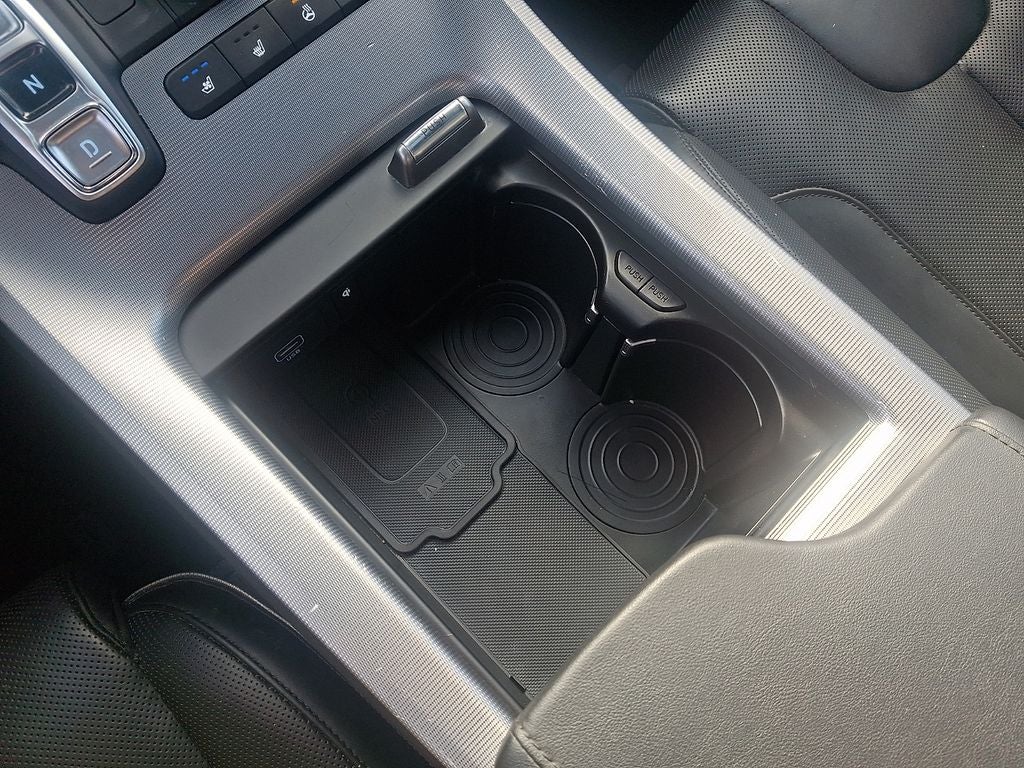 - Radio: AM/FM/MP3 Premium Audio System -inc: 630-Watts, Harman Kardon audio system w/12-speakers, Quantum Logic Surround, Clari-Fi, 12.3" color touchscreen display, onboard navigation w/traffic flow including incident data via HD Radio (HERE), Over-the-Air (OTA) map updates, SiriusXM, Android Auto and Apple CarPlay, USB, dynamic voice recognition, rear seat quiet mode, passenger talk (in-car intercom), Bluetooth® hands-free connectivity w/multiple device connection and Bluelink Connected Car System