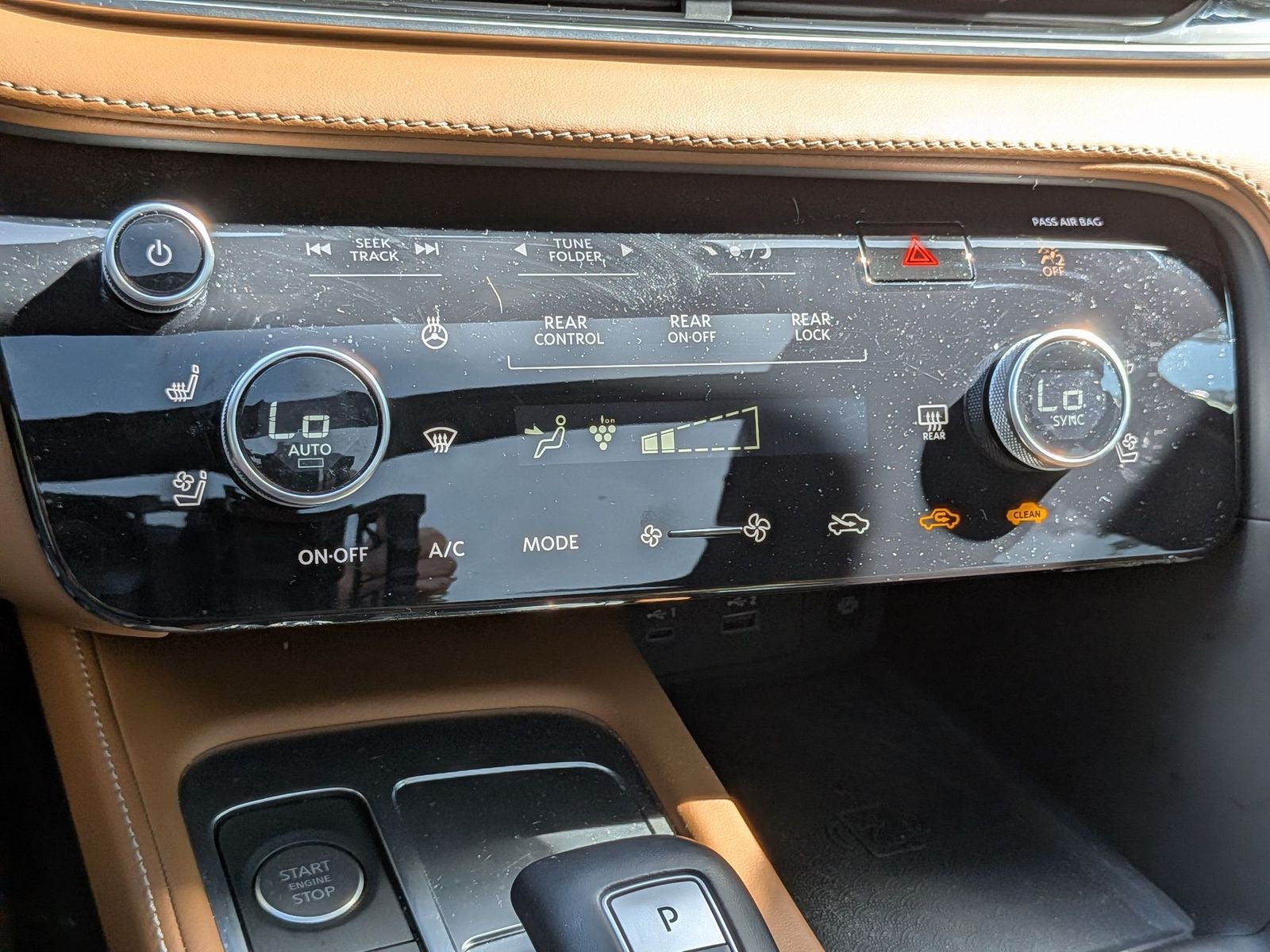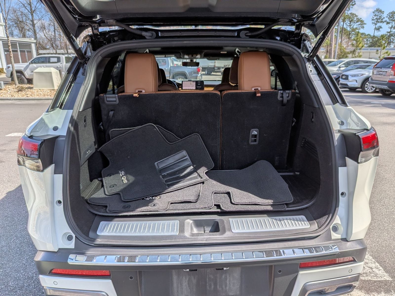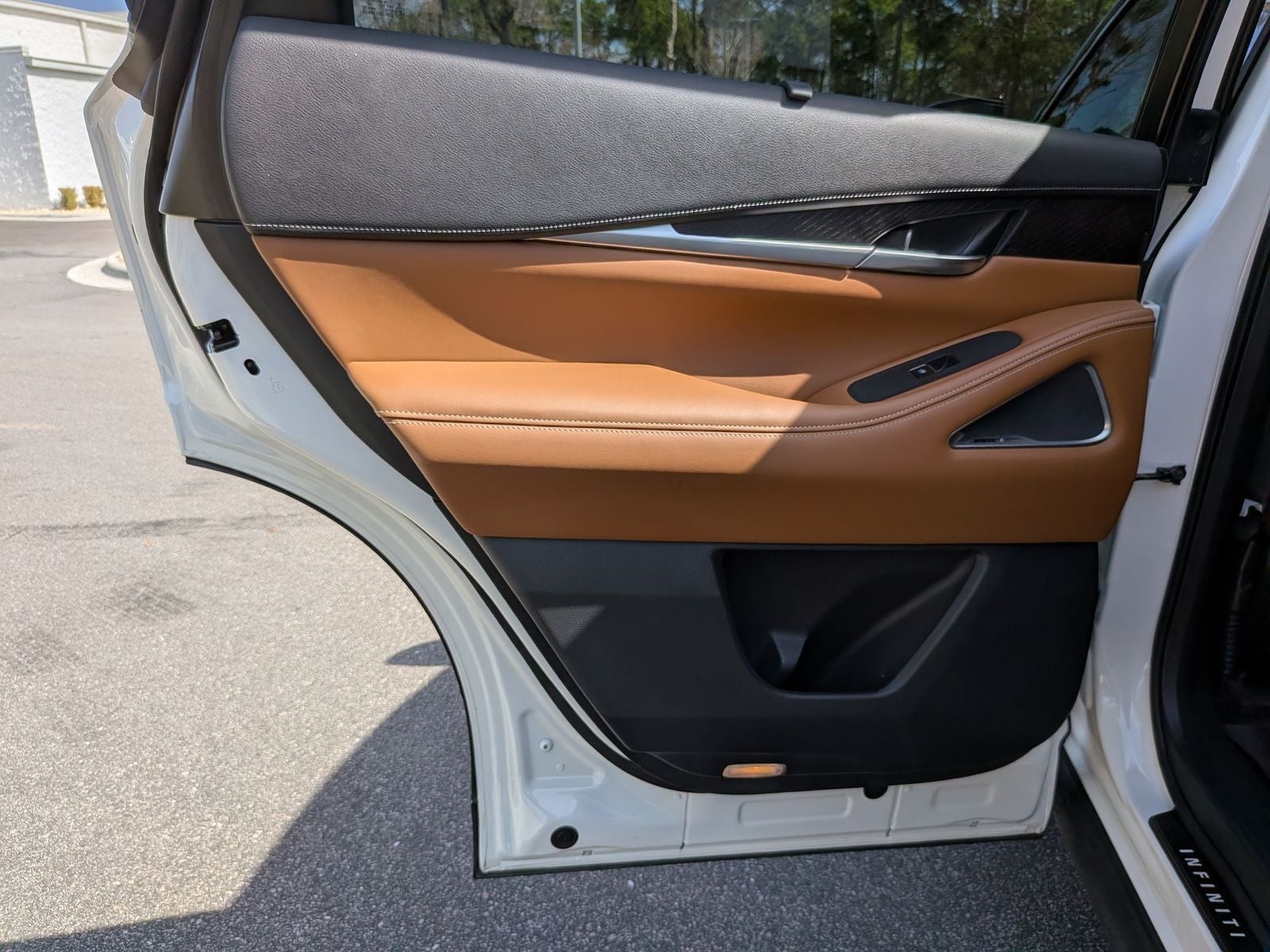 What makes us different? We specialize in hand selecting our pre-owned inventory and providing an amazing array of vehicles on our lot here in Wilmington, NC. We keep about 1000+ cars on the lot at any given time and find that being priced aggressively upfront allows us to save time, complete the deal process and keep the best inventory possible. The price you see is our very best price! All of our vehicles are priced below market value. We provide a hassle-free buying experience. Cargo Package (Cargo Mat (Reversible) and First Aid Kit), 17 Speakers, 3rd row seats: bench, 4-Wheel Disc Brakes, 4.33 Axle Ratio, ABS brakes, Air Conditioning, Alloy wheels, AM/FM radio: SiriusXM, Anti-whiplash front head restraints, Apple CarPlay/Android Auto, Auto High-beam Headlights, Auto tilt-away steering wheel, Auto-dimming door mirrors, Auto-dimming Rear-View mirror, Automatic temperature control, Black-Color Roof Rail Cross Bars, Bose Performance Series 17-Speaker Sound System, Brake assist, Bumpers: body-color, Climate Controlled Front Bucket Seats, Delay-off headlights, Driver door bin, Driver vanity mirror, Dual front impact airbags, Dual front side impact airbags, Electronic Stability Control, Emergency communication system: INFINITI InTouch, Exterior Parking Camera Rear, Four wheel independent suspension, Front anti-roll bar, Front Bucket Seats, Front Center Armrest, Front dual zone A/C, Front reading lights, Fully automatic headlights, Garage door transmitter: HomeLink, Heads-Up Display, Heated door mirrors, Heated front seats, Heated rear seats, Heated steering wheel, Illuminated entry, Knee airbag, Leather Shift Knob, Leather steering wheel, Low tire pressure warning, Memory seat, Navigation system: INFINITI InTouch Navigation, Occupant sensing airbag, Outside temperature display, Overhead airbag, Overhead console, Panic alarm, Passenger door bin, Passenger vanity mirror, Power door mirrors, Power driver seat, Power Liftgate, Power moonroof, Power passenger seat, Power steering, Power windows, Radio data system, Radio: AM/FM Audio System, Rain sensing wipers, Rear air conditioning, Rear anti-roll bar, Rear reading lights, Rear side impact airbag, Rear window defroster, Rear window wiper, Reclining 3rd row seat, Remote keyless entry, Security system, Semi Aniline Leather-Appointed Seating Surfaces, Speed control, Speed-sensing steering, Speed-Sensitive Wipers, Splash Guards (Set of 4), Split folding rear seat, Spoiler, Steering wheel memory, Steering wheel mounted audio controls, Tachometer, Telescoping steering wheel, Tilt steering wheel, Traction control, Trip computer, Turn signal indicator mirrors, Variably intermittent wipers, Ventilated front seats, and Wheels: 20 x 8J Luxury Machined Aluminum Alloy.