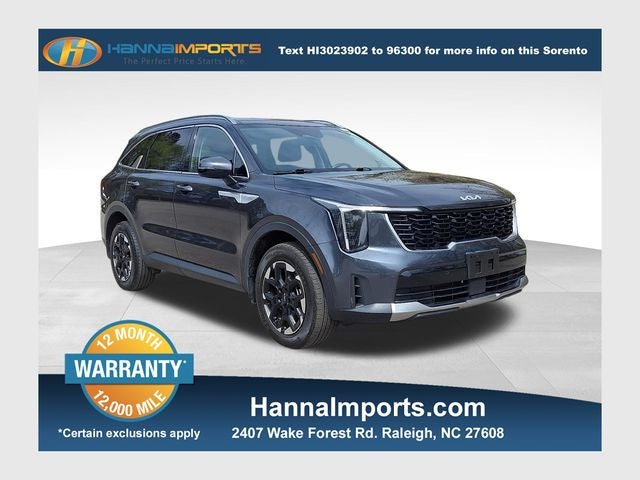 Why shop with Hanna Imports? We specialize in hand-selecting top-quality used cars, trucks, and SUVs for drivers across Raleigh, Durham, Cary, Chapel Hill, and the greater Triangle area of North Carolina. Our massive selection of 1,000+ vehicles on our Raleigh lot is carefully curated to include the most sought-after models, all priced below market value. We believe in transparency and efficiency—our vehicles are aggressively priced from the start, which means no haggling, no hassle, and no wasted time. The price you see is our absolute best price. Whether you're coming from Wake Forest, Apex, Garner, or anywhere in central NC, we’re committed to making your car-buying experience smooth, affordable, and enjoyable. Come see why Hanna Imports is one of the most trusted used car dealerships in North Carolina! Used Kia Sorento in Raleigh. Used Kia Sorento in North Carolina, Panoramic Sunroof Package (LED Interior Lighting and Panoramic Power Sunroof w/Power Sunshade), Sorento S, AWD, Apple CarPlay & Android Auto, Exterior Parking Camera Rear, Heated Front Bucket Seats, Navigation System, Remote keyless entry, 3rd row seats: split-bench, 4-Wheel Disc Brakes, 4.081 Axle Ratio, 6 Speakers, ABS brakes, Air Conditioning, Alloy wheels, AM/FM radio: SiriusXM, Auto High-beam Headlights, Automatic temperature control, Brake assist, Bumpers: body-color, Carpeted Floor Mats, Delay-off headlights, Driver door bin, Driver vanity mirror, Dual front impact airbags, Dual front side impact airbags, Electronic Stability Control, Emergency communication system: 911 Connect, Four wheel independent suspension, Front anti-roll bar, Front Bucket Seats, Front Center Armrest, Front dual zone A/C, Front fog lights, Front reading lights, Fully automatic headlights, Heated door mirrors, Heated front seats, Illuminated entry, Knee airbag, Leather Shift Knob, Leather steering wheel, Low tire pressure warning, Occupant sensing airbag, Outside temperature display, Overhead airbag, Overhead console, Panic alarm, Passenger door bin, Passenger vanity mirror, Power door mirrors, Power driver seat, Power steering, Power windows, Radio data system, Radio: AM/FM Audio System, Rear anti-roll bar, Rear reading lights, Rear seat center armrest, Rear side impact airbag, Rear window defroster, Rear window wiper, Security system, Smart Key w/ Push Button and Remote Start, Speed control, Speed-sensing steering, Split folding rear seat, Spoiler, Steering wheel mounted audio controls, SynTex Artificial Leather Seat Trim, Tachometer, Telescoping steering wheel, Tilt steering wheel, Traction control, Trip computer, Turn signal indicator mirrors, Variably intermittent wipers, and Wheels: 7.5J x 18 Alloy w/Machine Finish.