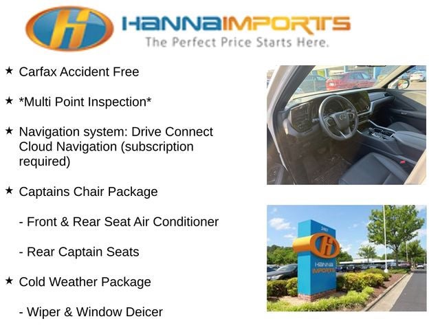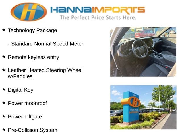 Why shop with Hanna Imports? We specialize in hand-selecting top-quality used cars, trucks, and SUVs for drivers across Raleigh, Durham, Cary, Chapel Hill, and the greater Triangle area of North Carolina. Our massive selection of 1,000+ vehicles on our Raleigh lot is carefully curated to include the most sought-after models, all priced below market value. We believe in transparency and efficiency—our vehicles are aggressively priced from the start, which means no haggling, no hassle, and no wasted time. The price you see is our absolute best price. Whether you're coming from Wake Forest, Apex, Garner, or anywhere in central NC, we’re committed to making your car-buying experience smooth, affordable, and enjoyable. Come see why Hanna Imports is one of the most trusted used car dealerships in North Carolina! Used Lexus TX in Raleigh. Used Lexus TX in North Carolina, Captains Chair Package (Front & Rear Seat Air Conditioner, Front & Rear Seat Heater, and Rear Captain Seats), Cold Weather Package (Leather Heated Steering Wheel w/Paddles and Wiper & Window Deicer), Convenience Package (Digital Key, Lane Keeping System, Pre-Collision System, and Rear Side Monitor), Technology Package (Intelligent Parking Assist, Peripheral Monitor Camera, and Standard Normal Speed Meter), TX 350 Premium, AWD, Exterior Parking Camera Rear, Navigation system: Drive Connect Cloud Navigation (subscription required), Power Liftgate, Power moonroof, Remote keyless entry, 12 Speakers, 20 Wheels, 3rd row seats: split-bench, 4-Wheel Disc Brakes, ABS brakes, Air Conditioning, Alloy wheels, AM/FM radio, Auto High-beam Headlights, Auto tilt-away steering wheel, Auto-dimming door mirrors, Auto-dimming Rear-View mirror, Automatic temperature control, Brake assist, Bumpers: body-color, Delay-off headlights, Driver door bin, Driver vanity mirror, Dual front impact airbags, Dual front side impact airbags, Electronic Stability Control, Emergency communication system: Safety Connect (10-year trial), Four wheel independent suspension, Front anti-roll bar, Front Bucket Seats, Front Center Armrest, Front dual zone A/C, Front fog lights, Front reading lights, Fully automatic headlights, Garage door transmitter: HomeLink, Heated & Air Conditioned Front Seats, Heated door mirrors, Heated front seats, Illuminated entry, Knee airbag, Leather Shift Knob, Leather steering wheel, Low tire pressure warning, Memory seat, NuLuxe Pattern Perforated Seat Trim, Occupant sensing airbag, Outside temperature display, Overhead airbag, Panic alarm, Passenger door bin, Passenger vanity mirror, Power door mirrors, Power driver seat, Power passenger seat, Power steering, Power windows, Radio data system, Radio: Lexus Interface, Rain sensing wipers, Rear air conditioning, Rear anti-roll bar, Rear reading lights, Rear seat center armrest, Rear window defroster, Rear window wiper, Reclining 3rd row seat, Security system, Speed control, Speed-sensing steering, Split folding rear seat, Spoiler, Steering wheel memory, Steering wheel mounted audio controls, Tachometer, TBD Axle Ratio, Telescoping steering wheel, Tilt steering wheel, Traction control, Trip computer, Turn signal indicator mirrors, Variably intermittent wipers, Ventilated
