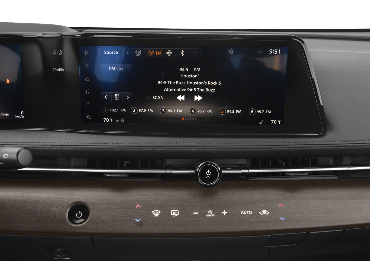 - Radio w/Seek-Scan, Clock, Speed Compensated Volume Control and Steering Wheel Controls