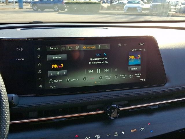 - Radio: AM/FM Audio System -inc: 12.3" color display w/multi-touch control, 6 speakers, MP3/WMA playback, Bluetooth® streaming audio, speed-sensitive volume control (SSV), satellite radio pre-wiring, SiriusXM satellite radio w/advanced features, SiriusXM Traffic, SiriusXM Travel Link, NissanConnect EV featuring wireless Apple CarPlay, wired Android Auto, navigation and NissanConnect services, Bluetooth® hands-free phone system (w/voice recognition in English, French and Spanish), voice destination entry (VDE) and hands-free text messaging assistant