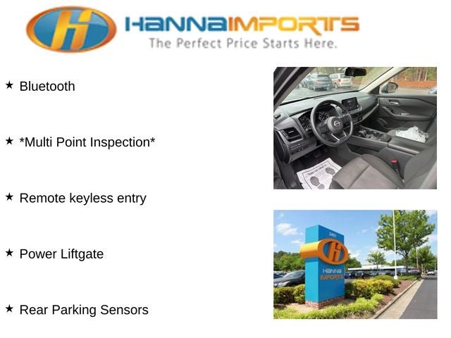 Why shop with Hanna Imports? We specialize in hand-selecting top-quality used cars, trucks, and SUVs for drivers across Raleigh, Durham, Cary, Chapel Hill, and the greater Triangle area of North Carolina. Our massive selection of 1,000+ vehicles on our Raleigh lot is carefully curated to include the most sought-after models, all priced below market value. We believe in transparency and efficiency—our vehicles are aggressively priced from the start, which means no haggling, no hassle, and no wasted time. The price you see is our absolute best price. Whether you're coming from Wake Forest, Apex, Garner, or anywhere in central NC, we’re committed to making your car-buying experience smooth, affordable, and enjoyable. Come see why Hanna Imports is one of the most trusted used car dealerships in North Carolina! Used Nissan Rogue in Raleigh. Used Nissan Rogue in North Carolina, Rogue SV, Power Liftgate, Rear Parking Sensors, Remote keyless entry, 4-Wheel Disc Brakes, 5.676 Axle Ratio, 6 Speakers, ABS brakes, Air Conditioning, Alloy wheels, AM/FM radio: SiriusXM, Auto High-beam Headlights, Automatic temperature control, Brake assist, Bumpers: body-color, Cloth Seat Trim w/Patterned Inserts, Delay-off headlights, Driver door bin, Driver vanity mirror, Dual front impact airbags, Dual front side impact airbags, Electronic Stability Control, Emergency communication system: NissanConnect Services, Four wheel independent suspension, Front anti-roll bar, Front Bucket Seats, Front Center Armrest, Front dual zone A/C, Front reading lights, Fully automatic headlights, Heated door mirrors, Illuminated entry, Knee airbag, Low tire pressure warning, NissanConnect featuring Apple CarPlay and Android Auto, Occupant sensing airbag, Outside temperature display, Overhead airbag, Overhead console, Panic alarm, Passenger door bin, Passenger vanity mirror, Power door mirrors, Power driver seat, Power steering, Power windows, Radio data system, Radio: AM/FM NissanConnect, Rear anti-roll bar, Rear seat center armrest, Rear side impact airbag, Rear window defroster, Rear window wiper, Speed control, Speed-Sensitive Wipers, Split folding rear seat, Spoiler, Steering wheel mounted audio controls, Tachometer, Telescoping steering wheel, Tilt steering wheel, Traction control, Trip computer, Variably intermittent wipers, and Wheels: 18 Dark Painted Machine Finished Alloy.