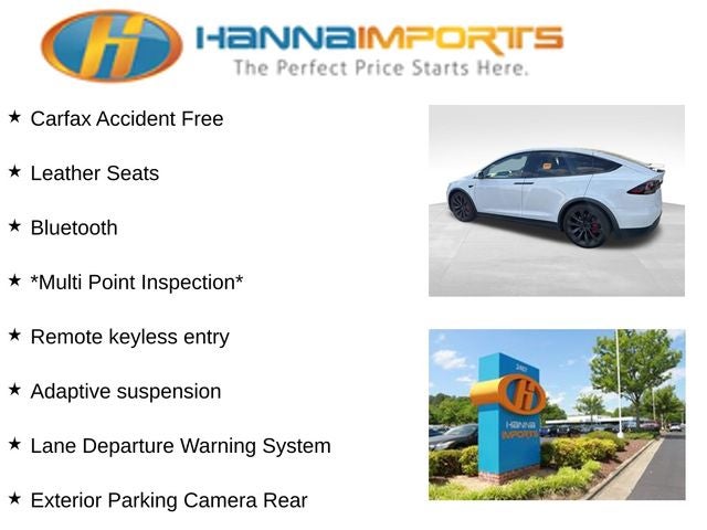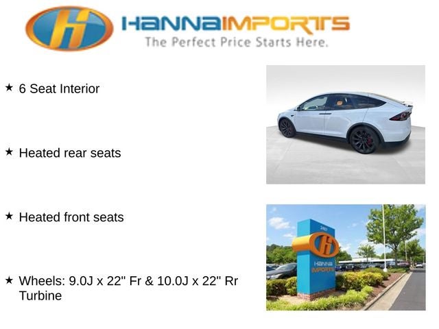 Why shop with Hanna Imports? We specialize in hand-selecting top-quality used cars, trucks, and SUVs for drivers across Raleigh, Durham, Cary, Chapel Hill, and the greater Triangle area of North Carolina. Our massive selection of 1,000+ vehicles on our Raleigh lot is carefully curated to include the most sought-after models, all priced below market value. We believe in transparency and efficiency—our vehicles are aggressively priced from the start, which means no haggling, no hassle, and no wasted time. The price you see is our absolute best price. Whether you're coming from Wake Forest, Apex, Garner, or anywhere in central NC, we’re committed to making your car-buying experience smooth, affordable, and enjoyable. Come see why Hanna Imports is one of the most trusted used car dealerships in North Carolina! Used Tesla Model X in Raleigh. Used Tesla Model X in North Carolina, Model X Plaid, AWD, 6 Seat Interior, Adaptive suspension, Exterior Parking Camera Rear, Heated front seats, Heated rear seats, Lane Departure Warning System, Remote keyless entry, Wheels: 9.0J x 22 Fr & 10.0J x 22 Rr Turbine, 22 Speakers, 3rd row seats: split-bench, 4-Wheel Disc Brakes, ABS brakes, Air Conditioning, Audio memory, Auto High-beam Headlights, Auto tilt-away steering wheel, Auto-dimming door mirrors, Auto-dimming Rear-View mirror, Auto-leveling suspension, Automatic temperature control, Axle Ratio: TBD, Brake assist, Bumpers: body-color, Compass, Delay-off headlights, Driver door bin, Driver vanity mirror, Dual front impact airbags, Dual front side impact airbags, Electronic Stability Control, Emergency communication system, Four wheel independent suspension, Front anti-roll bar, Front Bucket Seats, Front Center Armrest, Front dual zone A/C, Front fog lights, Front reading lights, Fully automatic headlights, Garage door transmitter: Homelink, Heated door mirrors, Heated steering wheel, HVAC memory, Illuminated entry, Knee airbag, Leather steering wheel, Low tire pressure warning, Memory seat, Navigation System, Occupant sensing airbag, Outside temperature display, Overhead airbag, Passenger door bin, Passenger vanity mirror, Power door mirrors, Power driver seat, Power Liftgate, Power passenger seat, Power steering, Power windows, Premium Audio System, Radio data system, Rain sensing wipers, Rear air conditioning, Rear anti-roll bar, Rear audio controls, Rear reading lights, Rear side impact airbag, Rear window defroster, Security system, Speed control, Speed-sensing steering, Speed-Sensitive Wipers, Split folding rear seat, Spoiler, Steering wheel memory, Steering wheel mounted A/C controls, Steering wheel mounted audio controls, Telescoping steering wheel, Tilt steering wheel, Traction control, Trip computer, Variably intermittent wipers, Vegan Leather Seat Trim, and Ventilated front seats.