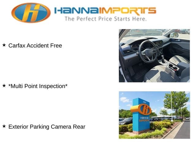 Why shop with Hanna Imports? We specialize in hand-selecting top-quality used cars, trucks, and SUVs for drivers across Raleigh, Durham, Cary, Chapel Hill, and the greater Triangle area of North Carolina. Our massive selection of 1,000+ vehicles on our Raleigh lot is carefully curated to include the most sought-after models, all priced below market value. We believe in transparency and efficiency—our vehicles are aggressively priced from the start, which means no haggling, no hassle, and no wasted time. The price you see is our absolute best price. Whether you're coming from Wake Forest, Apex, Garner, or anywhere in central NC, we’re committed to making your car-buying experience smooth, affordable, and enjoyable. Come see why Hanna Imports is one of the most trusted used car dealerships in North Carolina! Used Volkswagen Taos in Raleigh. Used Volkswagen Taos in North Carolina, Taos 1.5T SE, Exterior Parking Camera Rear, 3.23 Axle Ratio, 4-Wheel Disc Brakes, 6 Speakers, ABS brakes, Active Blind Spot Monitor, Air Conditioning, Alloy wheels, AM/FM radio: SiriusXM with 360L, Auto High-beam Headlights, Automatic temperature control, Brake assist, Bumpers: body-color, CloudTex & Cloth Seating Surfaces, Compass, Delay-off headlights, Driver door bin, Driver vanity mirror, Dual front impact airbags, Dual front side impact airbags, Electronic Stability Control, Emergency communication system: VW Car-Net Safe & Secure 5-year, Front anti-roll bar, Front Bucket Seats, Front Center Armrest, Front dual zone A/C, Front reading lights, Front Strut Rear Torsion Beam Suspension, Front wheel independent suspension, Fully automatic headlights, Heated door mirrors, Heated Front Bucket Seats, Heated front seats, Heated steering wheel, Illuminated entry, Leather Shift Knob, Low tire pressure warning, Occupant sensing airbag, Outside temperature display, Overhead airbag, Overhead console, Panic alarm, Passenger door bin, Passenger vanity mirror, Power door mirrors, Power driver seat, Power steering, Power windows, Radio data system, Radio: MIB3 Composition Media AM/FM/HD, Rain sensing wipers, Rear anti-roll bar, Rear seat center armrest, Rear window defroster, Rear window wiper, Remote keyless entry, Roof rack: rails only, Security system, Speed control, Speed-sensing steering, Split folding rear seat, Spoiler, Steering wheel mounted audio controls, Tachometer, Telescoping steering wheel, Tilt steering wheel, Traction control, Trip computer, Variably intermittent wipers, and Wheels: 18 2-Tone Machined Alloy.