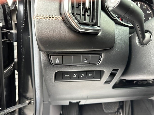 Equipped with 12 Speakers, 4-Wheel Disc Brakes, ABS brakes, Air Conditioning, Alloy wheels, AM/FM radio: SiriusXM, AppLink/Apple CarPlay and Android Auto, Auto High-beam Headlights, Auto-dimming Rear-View mirror, Automatic temperature control, Brake assist, Bumpers: body-color, Delay-off headlights, Driver door bin, Driver vanity mirror, Dual front impact airbags, Dual front side impact airbags, Electronic Stability Control, Emergency communication system: MAZDA CONNECT, Exterior Parking Camera Rear, Front anti-roll bar, Front Bucket Seats, Front Center Armrest, Front dual zone A/C, Front reading lights, Front wheel independent suspension, Fully automatic headlights, Garage door transmitter: HomeLink, Heads-Up Display, Heated and Ventilated Front Seats with 3 Level Adjustment, Heated door mirrors, Heated front seats, Illuminated entry, Knee airbag, Leather Seat Trim, Leather Shift Knob, Leather steering wheel, Low tire pressure warning, Memory seat, Occupant sensing airbag, Outside temperature display, Overhead airbag, Overhead console, Panic alarm, Passenger door bin, Passenger vanity mirror, Power door mirrors, Power driver seat, Power Liftgate, Power moonroof, Power passenger seat, Power steering, Power windows, Radio data system, Radio: AM/FM/HD Bose 12-Speaker Audio Sound System, Rain sensing wipers, Rear seat center armrest, Rear window defroster, Rear window wiper, Remote keyless entry, Speed control, Speed-sensing steering, Split folding rear seat, Spoiler, Steering wheel mounted audio controls, Tachometer, Telescoping steering wheel, Tilt steering wheel, Traction control, Trip computer, Turn signal indicator mirrors, Variably intermittent wipers, Ventilated front seats, and Wheels: 20 x 8J Aluminum Alloy Black Metallic with Machining Cut.