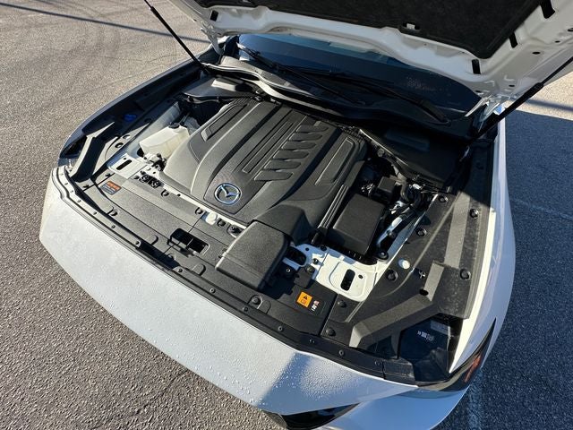 Equipped with Navigation system: MAZDA CONNECT, 12 Speakers, 4-Wheel Disc Brakes, ABS brakes, Air Conditioning, Alloy wheels, AM/FM radio: SiriusXM, Auto High-beam Headlights, Auto-dimming door mirrors, Auto-dimming Rear-View mirror, Automatic temperature control, Brake assist, Bumpers: body-color, Cargo Blocks, Compass, Delay-off headlights, Driver door bin, Driver vanity mirror, Dual front impact airbags, Dual front side impact airbags, E911 Automatic Emergency Notification, Electronic Stability Control, Emergency communication system: MAZDA CONNECT, Four wheel independent suspension, Front anti-roll bar, Front Bucket Seats, Front Center Armrest w/Storage, Front dual zone A/C, Front reading lights, Fully automatic headlights, Garage door transmitter: HomeLink, Heads-Up Display, Heated door mirrors, Heated front seats, Heated rear seats, Heated steering wheel, Heated/Ventilated Front Bucket Seats, Illuminated entry, Infotainment System Voice Command, Knee airbag, Leather Shift Knob, Leather steering wheel, Low tire pressure warning, Mazda Connected Services, Mazda Online Navigation, Memory seat, Nappa Leather Seat Trim, Occupant sensing airbag, Outside temperature display, Overhead airbag, Overhead console, Pandora Internet Radio Integration, Panic alarm, Passenger door bin, Passenger vanity mirror, Power door mirrors, Power driver seat, Power Liftgate, Power moonroof, Power passenger seat, Power steering, Power windows, Radio Broadcast Data System Program Information, Radio data system, Radio: AM/FM w/Bose Premium Audio Sound System, Rain sensing wipers, Rear air conditioning, Rear anti-roll bar, Rear reading lights, Rear seat center armrest, Rear window defroster, Rear window wiper, Remote keyless entry, Rhodium White Premium Paint Charge, Security system, SMS Text Msg Audio Delivery & Reply, Speed control, Speed-sensing steering, Split folding rear seat, Spoiler, Steering wheel memory, Steering wheel mounted audio controls, Tachometer, Telescoping steering wheel, Tilt steering wheel, Traction control, Trip computer, Turn signal indicator mirrors, Variably intermittent wipers, Ventilated front seats, and Wheels: 21 x 9.5J Aluminum Alloy.