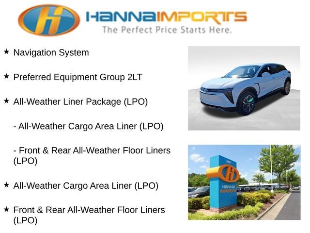 Why shop with Hanna Imports? We specialize in hand-selecting top-quality used cars, trucks, and SUVs for drivers across Raleigh, Durham, Cary, Chapel Hill, and the greater Triangle area of North Carolina. Our massive selection of 1,000+ vehicles on our Raleigh lot is carefully curated to include the most sought-after models, all priced below market value. We believe in transparency and efficiency—our vehicles are aggressively priced from the start, which means no haggling, no hassle, and no wasted time. The price you see is our absolute best price. Whether you're coming from Wake Forest, Apex, Garner, or anywhere in central NC, we’re committed to making your car-buying experience smooth, affordable, and enjoyable. Come see why Hanna Imports is one of the most trusted used car dealerships in North Carolina! Used Chevrolet Blazer EV in Raleigh. Used Chevrolet Blazer EV in North Carolina, All-Weather Liner Package (LPO) (All-Weather Cargo Area Liner (LPO) and Front & Rear All-Weather Floor Liners (LPO)), Preferred Equipment Group 2LT, Blazer EV LT, Electric Motor, Navigation System, 4-Wheel Disc Brakes, 6 Speakers, 6-Speaker Audio System Feature, 6-Way Manual Driver Seat Adjuster, 6-Way Manual Front Passenger Seat Adjuster, ABS brakes, Air Conditioning, All-Weather Cargo Area Liner (LPO) (DISC), Alloy wheels, AM/FM radio: SiriusXM with 360L, Auto High-beam Headlights, Automatic temperature control, Brake assist, Bumpers: body-color, Cloth Seat Trim, Compass, Delay-off headlights, Driver door bin, Driver vanity mirror, Dual front impact airbags, Dual front side impact airbags, Dual Level Charge Cord, Electronic Stability Control, Emergency communication system: OnStar and Chevrolet connected services capable, Four wheel independent suspension, Front & Rear All-Weather Floor Liners (LPO) (DISC), Front anti-roll bar, Front Bucket Seats, Front Center Armrest, Front reading lights, Fully automatic headlights, Illuminated entry, Knee airbag, Low tire pressure warning, Occupant sensing airbag, Outside temperature display, Overhead airbag, Overhead console, Panic alarm, Passenger door bin, Passenger vanity mirror, Power door mirrors, Power steering, Power windows, Radio: 17.7 Diagonal Advanced Color LCD Display, Rear anti-roll bar, Rear reading lights, Rear seat center armrest, Rear window defroster, Rear window wiper, Remote keyless entry, Ride & Handling Suspension, Security system, SiriusXM w/360L Trial Subscription, Speed control, Split folding rear seat, Spoiler, Steering wheel mounted audio controls, Telescoping steering wheel, Tilt steering wheel, Traction control, Trip computer, Variably intermittent wipers, and Wheels: 19 Machined-Face Aluminum.