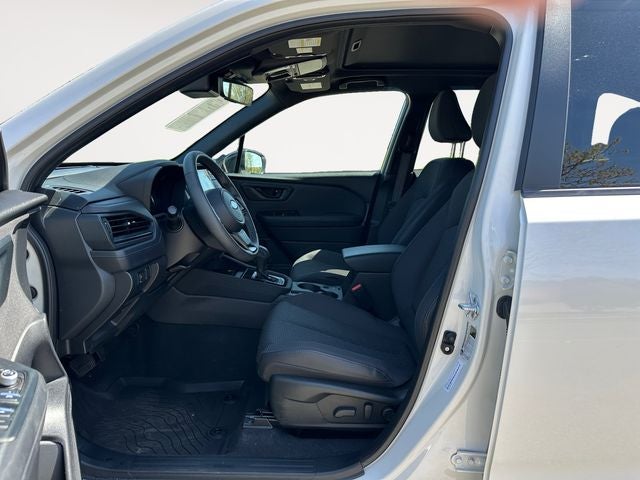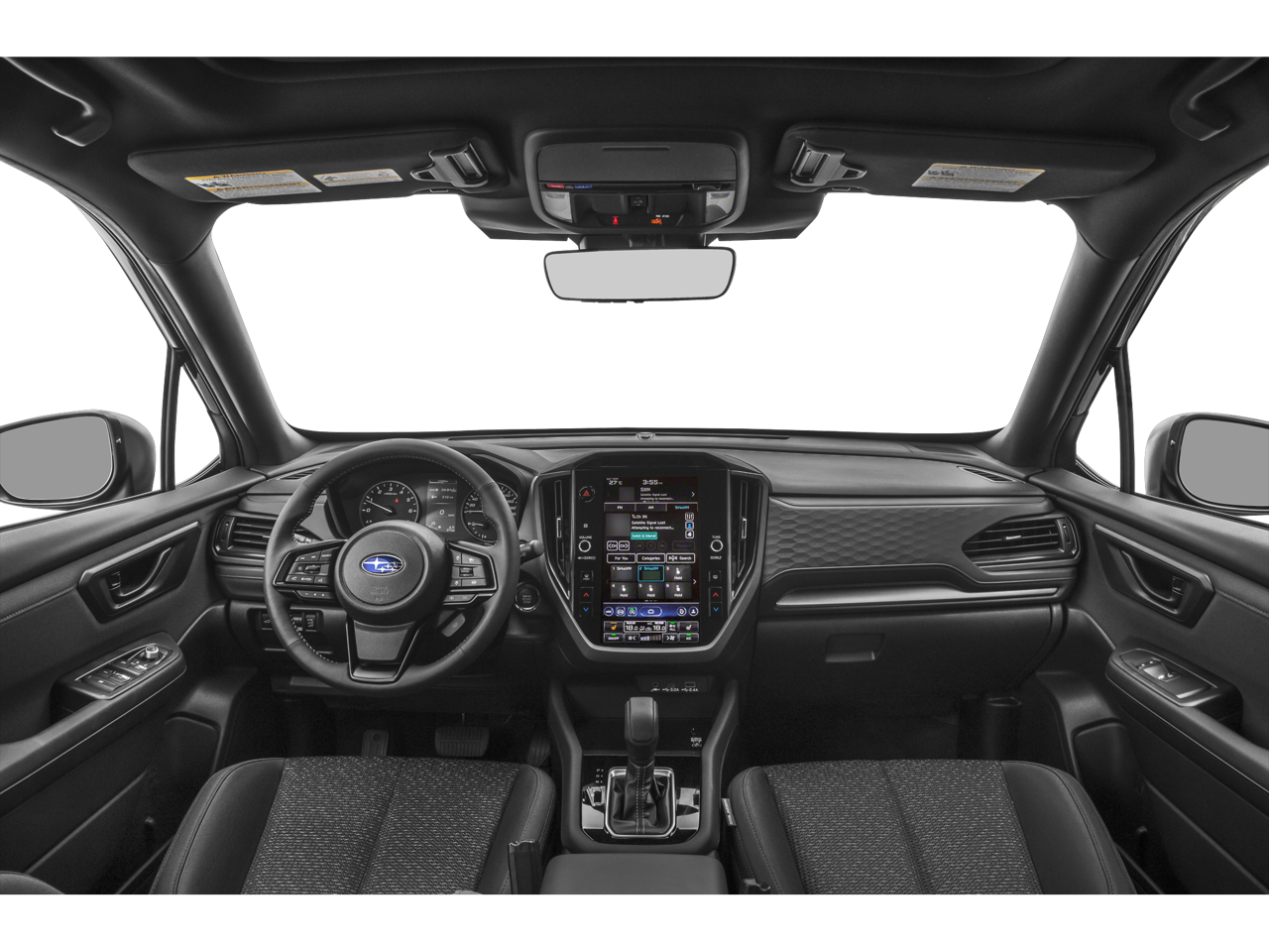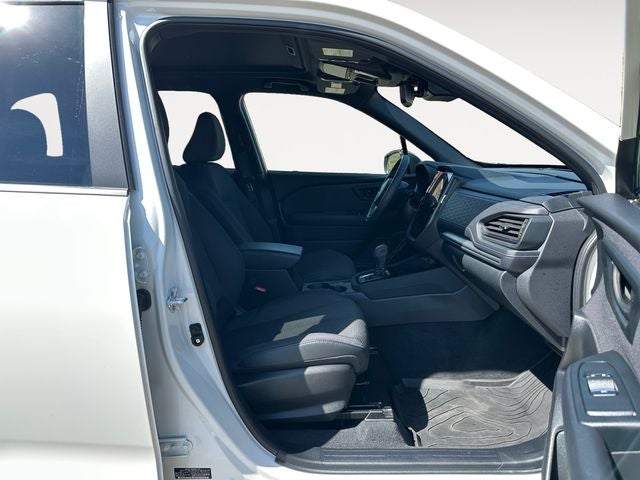 Equipped with Standard Model, 4-Wheel Disc Brakes, 6 Speakers, ABS brakes, Air Conditioning, All-Weather Floor Liners, Alloy wheels, AM/FM radio: SiriusXM with 360L, Anti-whiplash front head restraints, Auto High-beam Headlights, Auto-Dimming Exterior Mirror w/Approach Light, Auto-Dimming Mirror w/Compass & HomeLink, Automatic temperature control, Brake assist, Bumpers: body-color, Cargo Tray, Driver door bin, Driver vanity mirror, Dual front impact airbags, Dual front side impact airbags, Electronic Stability Control, Emergency communication system: MySubaru Safety (3-year free trial), Exterior Parking Camera Rear, Four wheel independent suspension, Front anti-roll bar, Front Bucket Seats, Front Center Armrest, Front dual zone A/C, Front fog lights, Front reading lights, Fully automatic headlights, Heated door mirrors, Heated Front Bucket Seats, Heated front seats, Illuminated entry, Knee airbag, Leather steering wheel, Low tire pressure warning, Occupant sensing airbag, Outside temperature display, Overhead airbag, Overhead console, Panic alarm, Passenger door bin, Passenger vanity mirror, Power door mirrors, Power driver seat, Power moonroof: Panoramic, Power steering, Power windows, Premium Textured Cloth Upholstery, Radio data system, Radio: Subaru 11.6 Multimedia Plus System, Rear anti-roll bar, Rear Bumper Cover, Rear seat center armrest, Rear window defroster, Rear window wiper, Remote keyless entry, Security system, Speed control, Speed-sensing steering, Splash Guards, Split folding rear seat, Spoiler, Steering wheel mounted audio controls, Tachometer, Telescoping steering wheel, Tilt steering wheel, Traction control, Trip computer, Variably intermittent wipers, and Wheels: 17 x 7.0 J Dark Metallic Aluminum-Alloy.