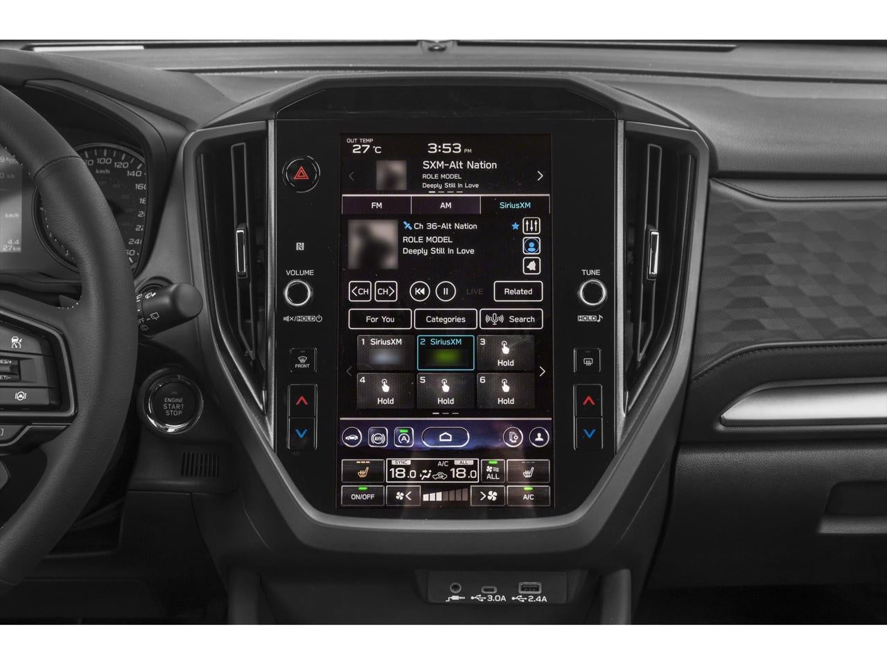 - Radio: Subaru 11.6" Multimedia Plus System -inc: valet mode, integrated center information display, AM/FM stereo HD Radio, multi-touch gesture high resolution display screen, voice activated controls, Bluetooth® audio streaming and hands-free phone connectivity w/SMS text messaging connectivity (refer to subaru.com for cell phone compatibility), iPod control capability, SiriusXM w/360L (4 months free trial/subscription required after), SiriusXM Travel Link (3 years free trial/subscription required after), smartphone integration for Android Auto and Apple CarPlay w/full screen view and wireless connection, USB and Over The Air (OTA) audio system update, steering wheel control switches for audio and Bluetooth®, 6 speakers, 3.5mm auxiliary input jack and roof mounted audio and satellite antenna