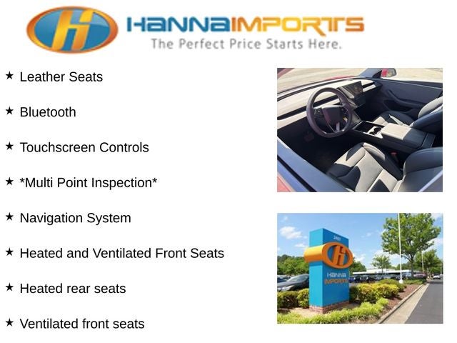 Why shop with Hanna Imports? We specialize in hand-selecting top-quality used cars, trucks, and SUVs for drivers across Raleigh, Durham, Cary, Chapel Hill, and the greater Triangle area of North Carolina. Our massive selection of 1,000+ vehicles on our Raleigh lot is carefully curated to include the most sought-after models, all priced below market value. We believe in transparency and efficiency—our vehicles are aggressively priced from the start, which means no haggling, no hassle, and no wasted time. The price you see is our absolute best price. Whether you're coming from Wake Forest, Apex, Garner, or anywhere in central NC, we’re committed to making your car-buying experience smooth, affordable, and enjoyable. Come see why Hanna Imports is one of the most trusted used car dealerships in North Carolina! Used Tesla Model 3 in Raleigh. Used Tesla Model 3 in North Carolina, Model 3 Long Range, Heated and Ventilated Front Seats, Heated front seats, Heated rear seats, Navigation System, Ventilated front seats, 4-Wheel Disc Brakes, 9 Speakers, ABS brakes, Air Conditioning, Alloy wheels, Audio memory, Auto High-beam Headlights, Auto-dimming door mirrors, Auto-dimming Rear-View mirror, Automatic temperature control, Brake assist, Bumpers: body-color, Compass, Delay-off headlights, Driver door bin, Driver vanity mirror, Dual front impact airbags, Dual front side impact airbags, Electronic Stability Control, Emergency communication system, Exterior Parking Camera Rear, Four wheel independent suspension, Front anti-roll bar, Front Bucket Seats, Front Center Armrest w/Storage, Front dual zone A/C, Front reading lights, Fully automatic headlights, Heated door mirrors, Heated steering wheel, HVAC memory, Illuminated entry, Knee airbag, Lane Departure Warning System, Low tire pressure warning, Memory seat, Occupant sensing airbag, Outside temperature display, Overhead airbag, Passenger door bin, Passenger vanity mirror, Power door mirrors, Power driver seat, Power passenger seat, Power steering, Power windows, Radio data system, Radio: Base Audio System, Rain sensing wipers, Rear air conditioning, Rear audio controls, Rear reading lights, Rear seat center armrest, Rear window defroster, Security system, Speed control, Speed-sensing steering, Split folding rear seat, Steering wheel memory, Steering wheel mounted A/C controls, Steering wheel mounted audio controls, Telescoping steering wheel, Tilt steering wheel, Traction control, Trip computer, Variably intermittent wipers, Vegan Leather Seat Trim, and Wheels: 18 x 8.5 Photon.