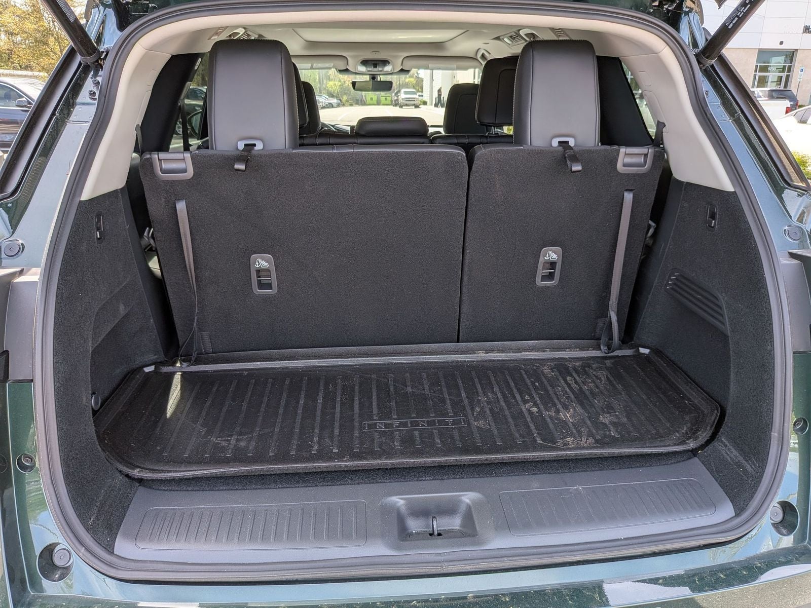 22/27 City/Highway MPG What makes us different? We specialize in hand selecting our pre-owned inventory and providing an amazing array of vehicles on our lot here in Wilmington, NC. We keep about 1000+ cars on the lot at any given time and find that being priced aggressively upfront allows us to save time, complete the deal process and keep the best inventory possible. The price you see is our very best price! All of our vehicles are priced below market value. We provide a hassle-free buying experience. Cargo Package (Cargo Net, Clear Rear Bumper Film, and Medic Kit), 17 Speakers, 3rd row seats: bench, 4-Wheel Disc Brakes, ABS brakes, Air Conditioning, Alloy wheels, AM/FM radio: SiriusXM with 360L, Anti-whiplash front head restraints, Apple CarPlay/Android Auto, Auto High-beam Headlights, Auto tilt-away steering wheel, Auto-dimming door mirrors, Auto-dimming Rear-View mirror, Automatic temperature control, Bose Performance Series 17-Speaker Sound System, Brake assist, Bumpers: body-color, Carpeted Floor Mats with Bench Seats on 3rd Row Tray, Climate Controlled Front Bucket Seats, Delay-off headlights, Driver door bin, Driver vanity mirror, Dual front impact airbags, Dual front side impact airbags, Electronic Stability Control, Emergency communication system: INFINITI InTouch, Four wheel independent suspension, Front anti-roll bar, Front Bucket Seats, Front Center Armrest, Front dual zone A/C, Front reading lights, Fully automatic headlights, Garage door transmitter: HomeLink, Heated door mirrors, Heated front seats, Heated rear seats, Heated steering wheel, Illuminated entry, Knee airbag, Leather Shift Knob, Leather steering wheel, Literature Kit, Low tire pressure warning, Memory seat, Navigation system: Google Built-in, Occupant sensing airbag, Outside temperature display, Overhead airbag, Overhead console, Panic alarm, Passenger door bin, Passenger vanity mirror, Power door mirrors, Power driver seat, Power Liftgate, Power moonroof: Panoramic, Power passenger seat, Power steering, Power windows, Premium Paint, Radio data system, Radio: Klipsch Premium Audio System, Rain sensing wipers, Rear air conditioning, Rear anti-roll bar, Rear reading lights, Rear seat center armrest, Rear side impact airbag, Rear window defroster, Rear window wiper, Reclining 3rd row seat, Remote keyless entry, Security system, Speed control, Speed-sensing steering, Speed-Sensitive Wipers, Splash Guards, Split folding rear seat, Spoiler, Steering wheel memory, Steering wheel mounted audio controls, Tachometer, Tailorfit-Appointed Seating Surfaces, Telescoping steering wheel, Tilt steering wheel, Traction control, Trip computer, Turn signal indicator mirrors, Variably intermittent wipers, Ventilated front seats, and Wheels: 20 x 8J Machined Aluminum Alloy.