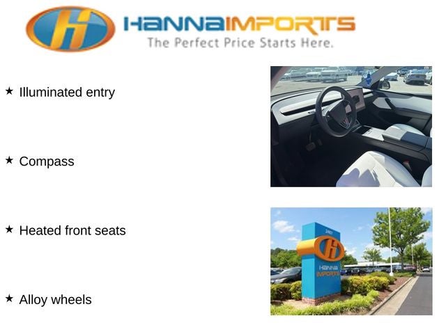 Why shop with Hanna Imports? We specialize in hand-selecting top-quality used cars, trucks, and SUVs for drivers across Raleigh, Durham, Cary, Chapel Hill, and the greater Triangle area of North Carolina. Our massive selection of 1,000+ vehicles on our Raleigh lot is carefully curated to include the most sought-after models, all priced below market value. We believe in transparency and efficiency—our vehicles are aggressively priced from the start, which means no haggling, no hassle, and no wasted time. The price you see is our absolute best price. Whether you're coming from Wake Forest, Apex, Garner, or anywhere in central NC, we’re committed to making your car-buying experience smooth, affordable, and enjoyable. Come see why Hanna Imports is one of the most trusted used car dealerships in North Carolina! Used Tesla Model Y in Raleigh. Used Tesla Model Y in North Carolina, ABS brakes, Alloy wheels, Compass, Electronic Stability Control, Emergency communication system, Exterior Parking Camera Rear, Front dual zone A/C, Heated door mirrors, Heated front seats, Illuminated entry, Lane Departure Warning System, Low tire pressure warning, Navigation System, Power Liftgate, Traction control, 4-Wheel Disc Brakes, 5 Seat Interior, 7 Speakers, Air Conditioning, Audio memory, Auto High-beam Headlights, Auto tilt-away steering wheel, Auto-dimming door mirrors, Auto-dimming Rear-View mirror, Automatic temperature control, Brake assist, Bumpers: body-color, Delay-off headlights, Driver door bin, Driver vanity mirror, Dual front impact airbags, Dual front side impact airbags, Four wheel independent suspension, Front anti-roll bar, Front Bucket Seats, Front Center Armrest, Front reading lights, Fully automatic headlights, Heated steering wheel, HVAC memory, Knee airbag, Memory seat, Occupant sensing airbag, Outside temperature display, Overhead airbag, Passenger door bin, Passenger vanity mirror, Power door mirrors, Power driver seat, Power passenger seat, Power steering, Power windows, Radio data system, Radio: Tesla Audio System, Rain sensing wipers, Rear air conditioning, Rear reading lights, Rear seat center armrest, Rear window defroster, Security system, Speed control, Speed-sensing steering, Split folding rear seat, Steering wheel mounted A/C controls, Steering wheel mounted audio controls, Telescoping steering wheel, Textile Seat Trim, Tilt steering wheel, Trip computer, Variably intermittent wipers, and Wheels: 18 Aperture.